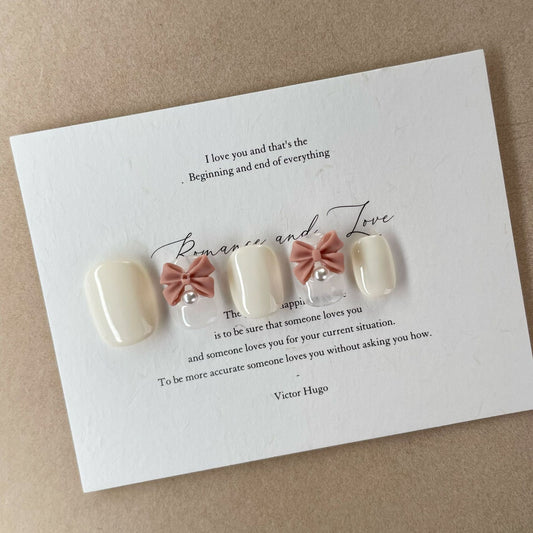 Short Square Cute Sweet Bow Handmade Press-On Nails | Removable and Reusable | Free Tool Kit Included