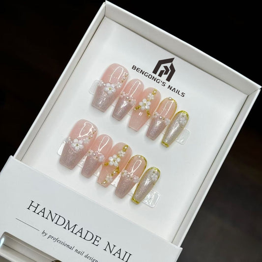 Chantilly Bloom Handmade Press-On Nails | Long Coffin | Removable and Reusable | Free Tool Kit IncludedRegular price $28.00 USDRegular priceUnit price / per-