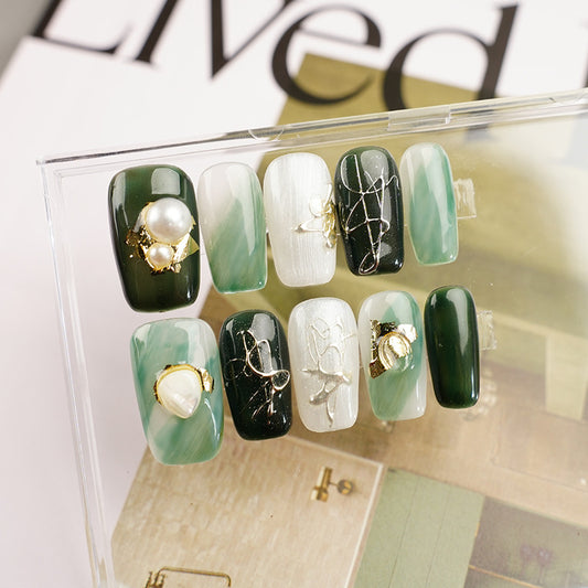 Deep Forest Ombré Handmade Press-On Nails | Medium-length Square | Removable and Reusable | Free Tool Kit IncludedRegular price $24.00 USDRegular priceUnit price / per-