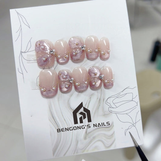 Super Short Square Pink Cat Eye & Buccellati Design Handmade Press-On Nails | Removable and Reusable | Free Tool Kit IncludedRegular price $30.00 USDRegular priceUnit price / per-