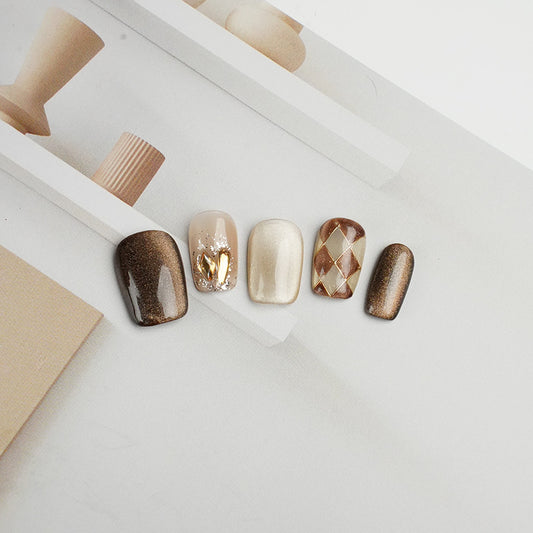 Handcrafted Short Square Cat Eye Nails – Coffee Checkerboard Design | Handmade Press-On Nails |Removable and Reusable | Free Tool Kit IncludedRegular price $30.00 USDRegular priceUnit price / per-