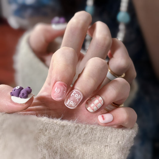 3 Shape Cartoon Dopamine Cute Girl Press On Nails | Kawaii Melody Handmade Nails | Four Types of Nail Shapes|Free Tool Kit Set Included