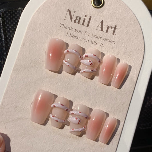 Medium Coffin Pink 3D Snake Handmade Press-On Nails | Removable and Reusable | Free Tool Kit Included
