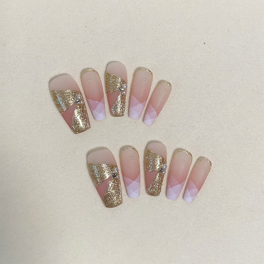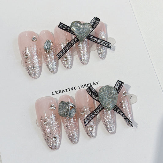 Sparkling BulingBuling Press On Nails|Galaxy Gradient Handmade Nails|Cute Bow Ribbons&Heart-shaped Diamonds|Free Tool Kit Set Included
