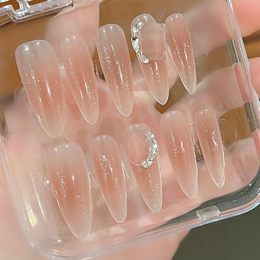 Snow White-like Nails|Ice Heart Cat Eye Long Almond Handmade Nails| Removable Reusable Press On Nails|Free Tool Kit Set Included