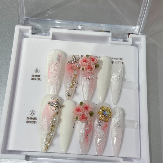 When you purchase our handmade press-on nails, we will include a storage box and a complete set of application tools for free (1 pcs jelly sticker, nail removal stick, alcohol pad, nail file). If you need UV nail gel, it must be purchased separately.