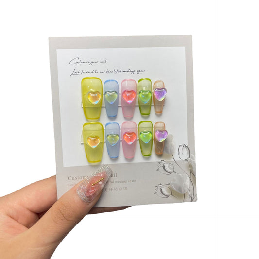 Heart-shaped Macaron Handmade Nails | Cute Candy Diamond Aurora Press On Nails|Free Tool Kit Set Included