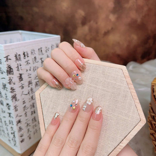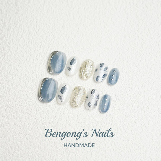 Ash Petal Art Handmade Press-On Nails | Medium Oval | Removable and Reusable | Free Tool Kit Included
