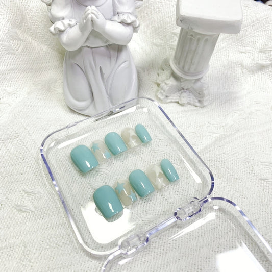 Short Coffin Summer Fresh Mint Green Handmade Press-On Nails | Removable and Reusable | Free Tool Kit Included