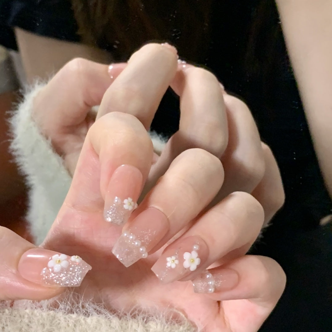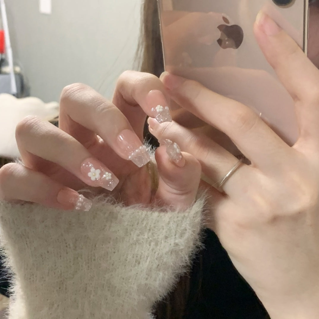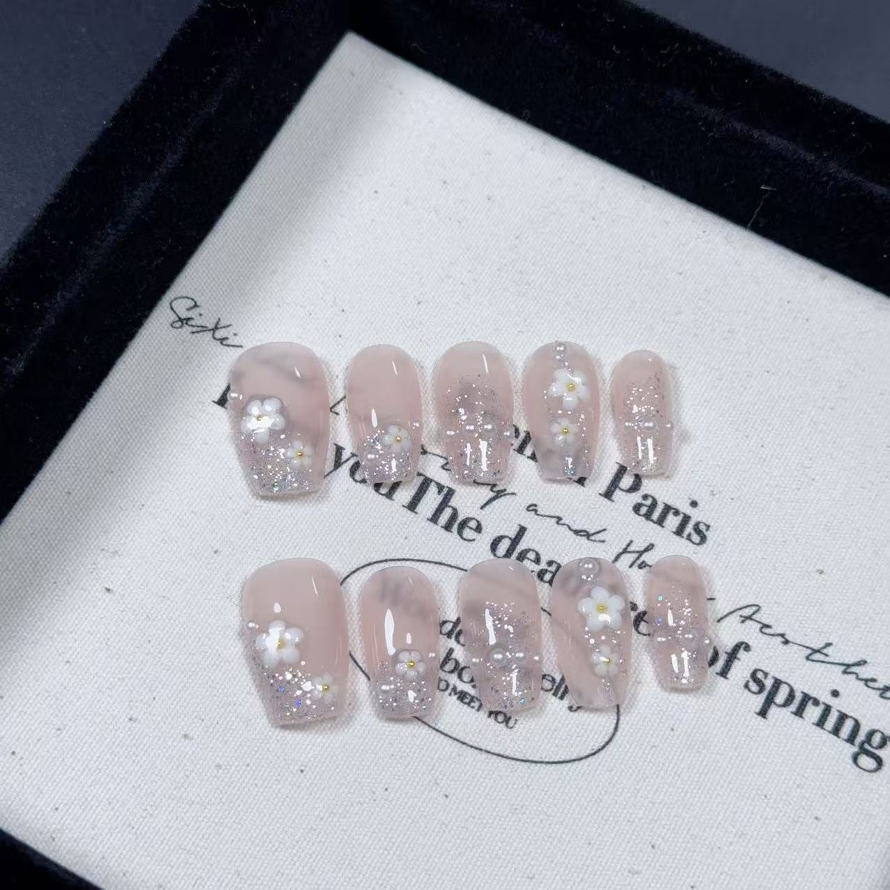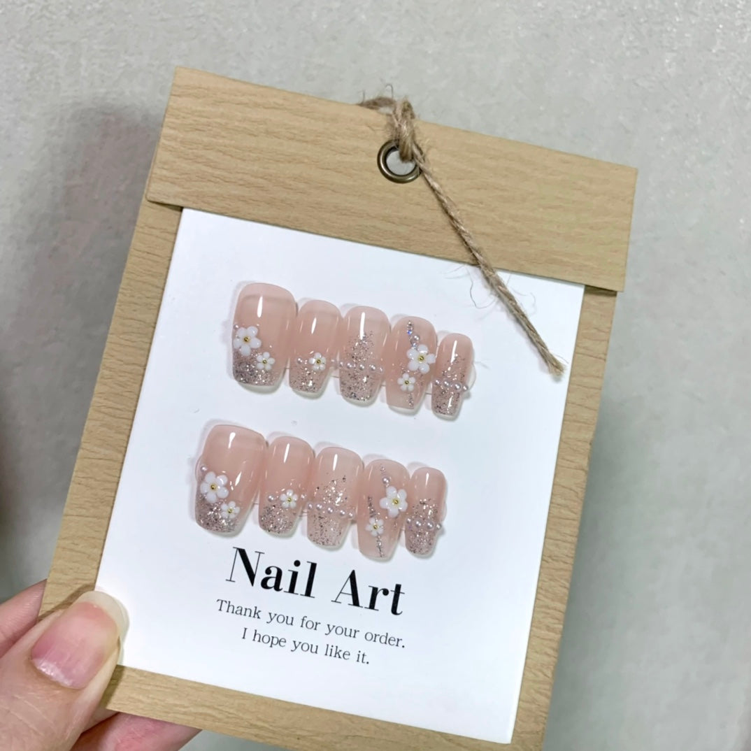 All press-on nails in the shop are handmade by manicurists. Due to lighting issues during photography and variations in mobile phone resolutions, slight color differences are inevitable but do not affect the overall effect. Additionally, each stroke by a manicurist is unique, so each set of press-on nails may be distinctive.
