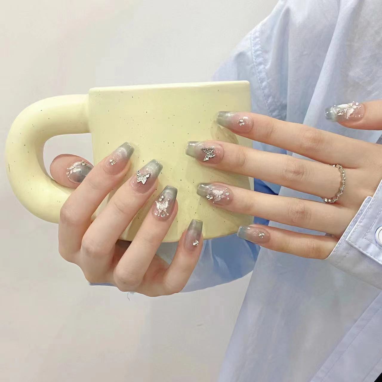 All press-on nails in the shop are handmade by manicurists. Due to lighting issues during photography and variations in mobile phone resolutions, slight color differences are inevitable but do not affect the overall effect. Additionally, each stroke by a manicurist is unique, so each set of press-on nails may be distinctive.