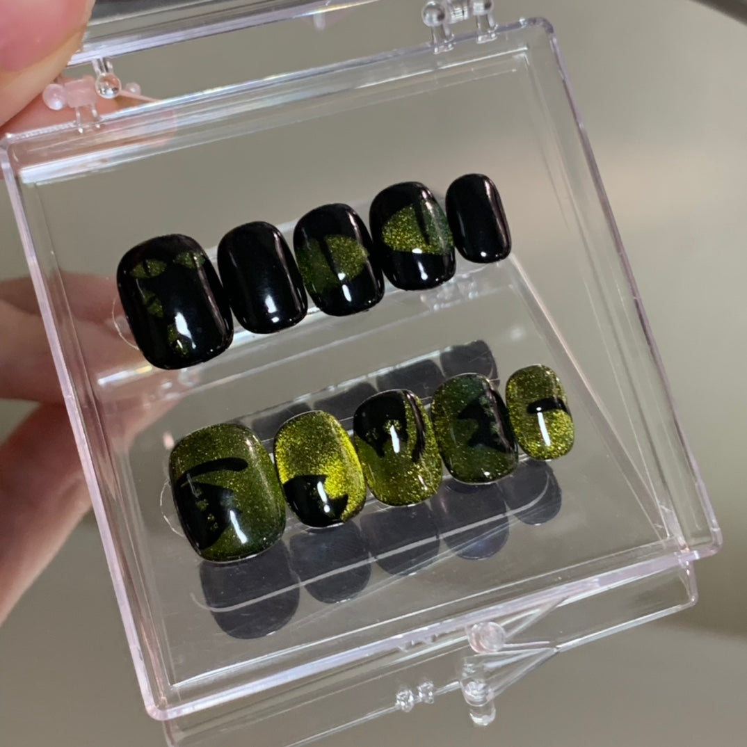 All press-on nails in the shop are handmade by manicurists. Due to lighting issues during photography and variations in mobile phone resolutions, slight color differences are inevitable but do not affect the overall effect. Additionally, each stroke by a manicurist is unique, so each set of press-on nails may be distinctive.