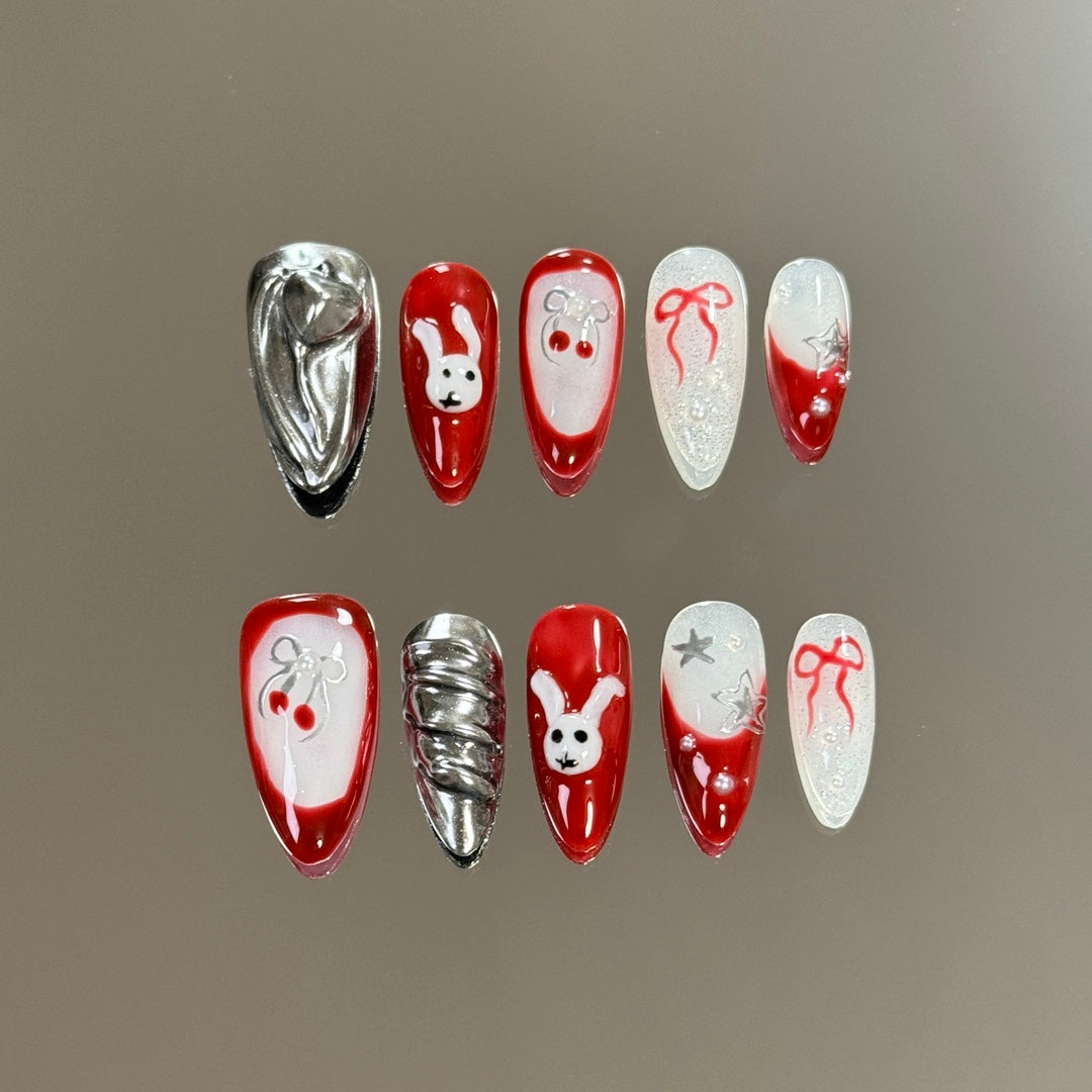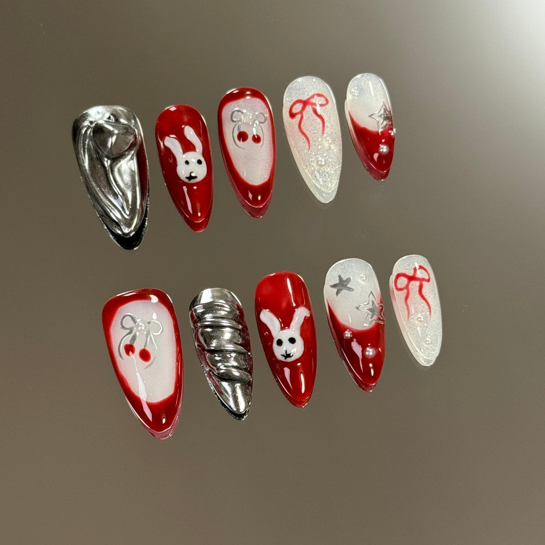 All press-on nails in the shop are handmade by manicurists. Due to lighting issues during photography and variations in mobile phone resolutions, slight color differences are inevitable but do not affect the overall effect. Additionally, each stroke by a manicurist is unique, so each set of press-on nails may be distinctive.