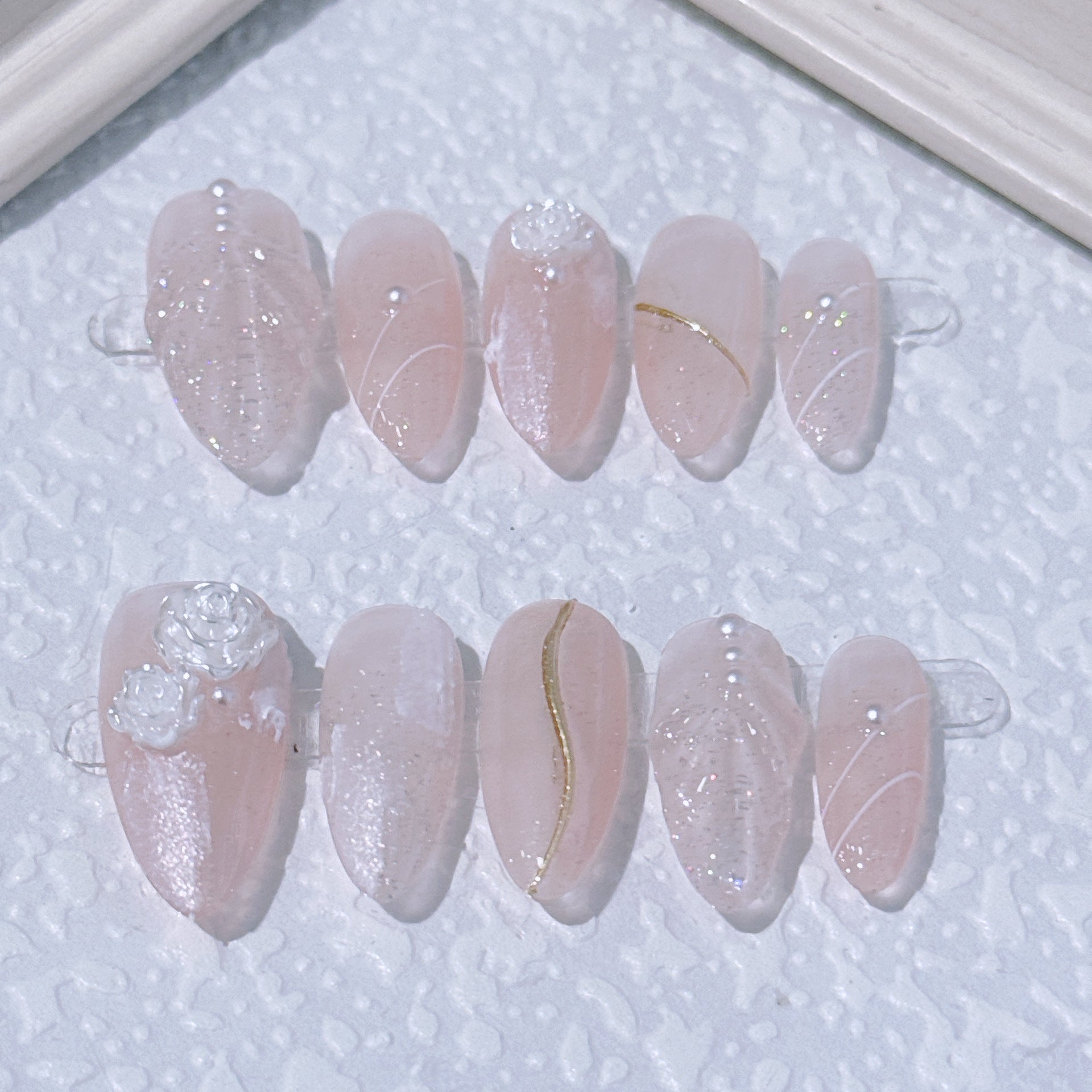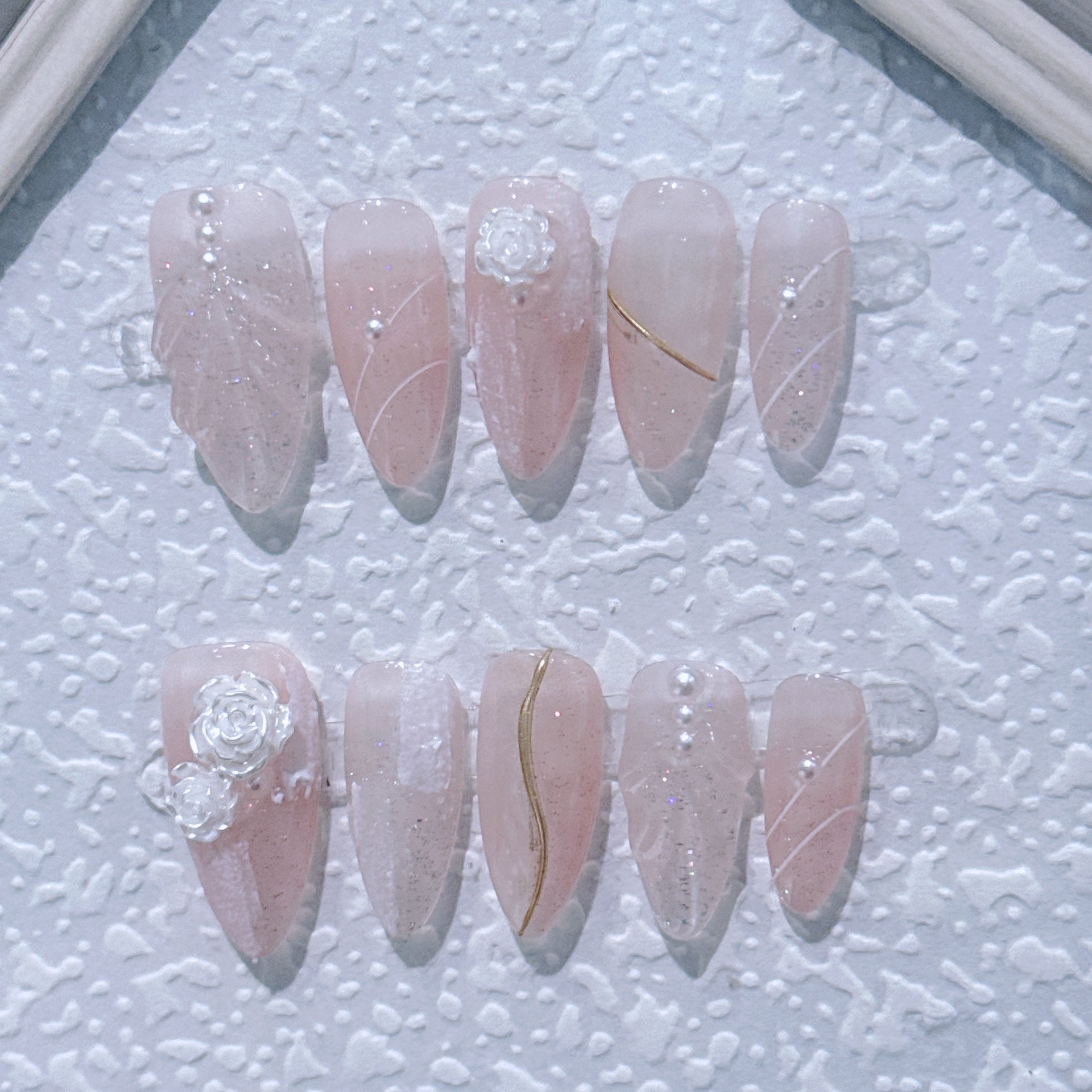 All press-on nails in the shop are handmade by manicurists. Due to lighting issues during photography and variations in mobile phone resolutions, slight color differences are inevitable but do not affect the overall effect. Additionally, each stroke by a manicurist is unique, so each set of press-on nails may be distinctive.
