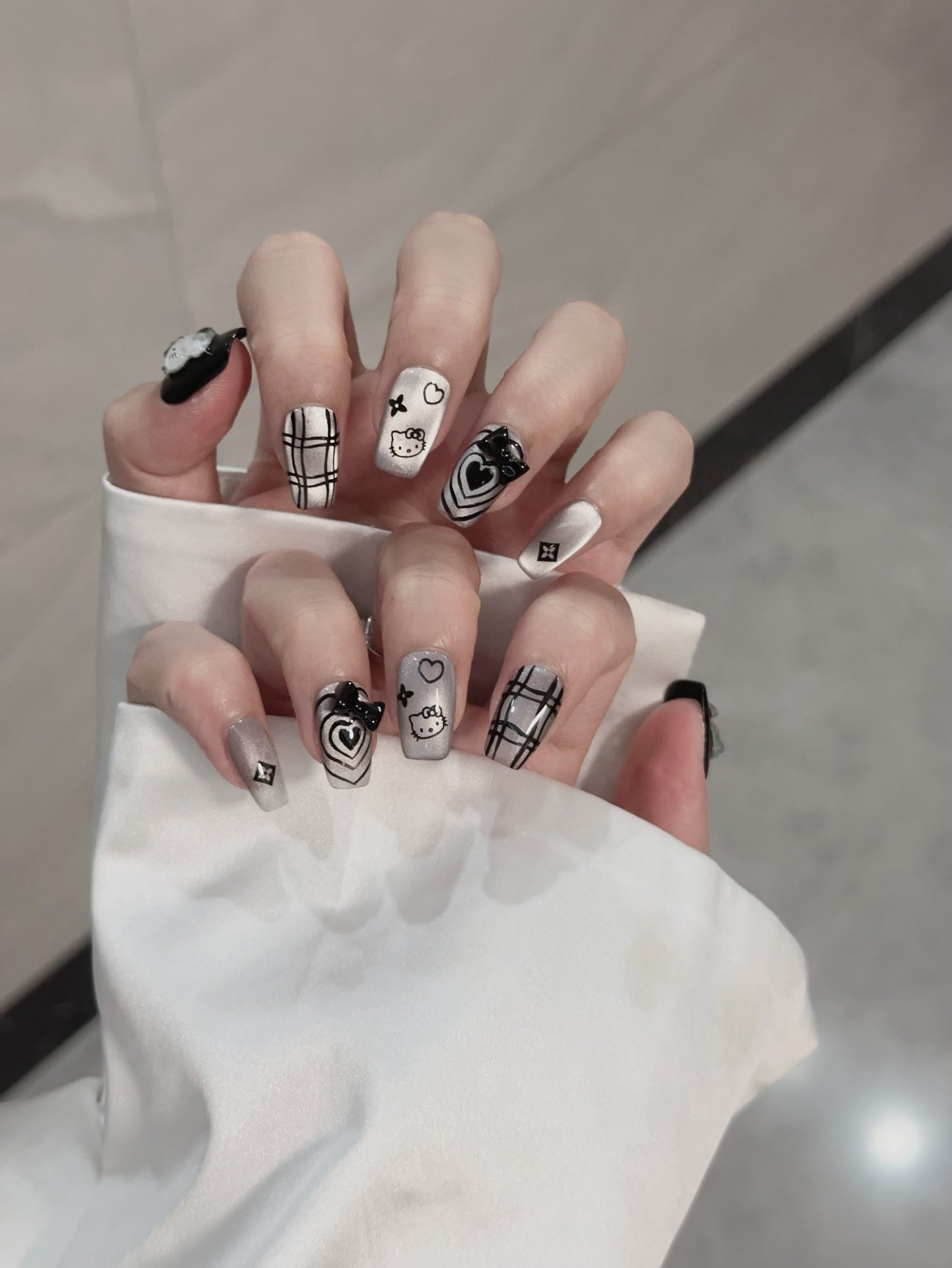 All press-on nails in the shop are handmade by manicurists. Due to lighting issues during photography and variations in mobile phone resolutions, slight color differences are inevitable but do not affect the overall effect. Additionally, each stroke by a manicurist is unique, so each set of press-on nails may be distinctive.