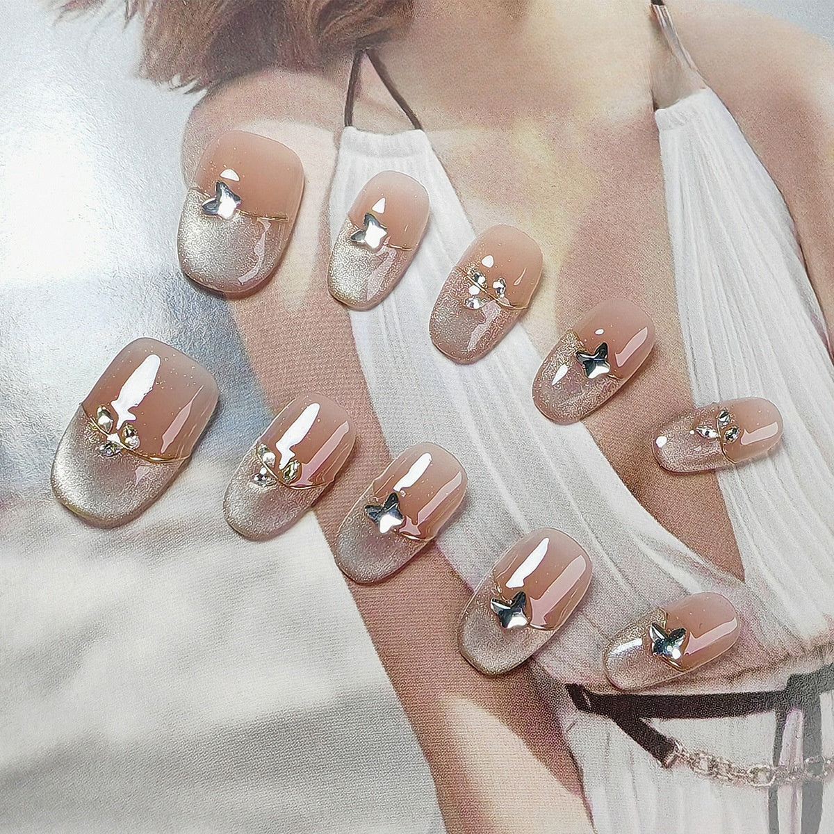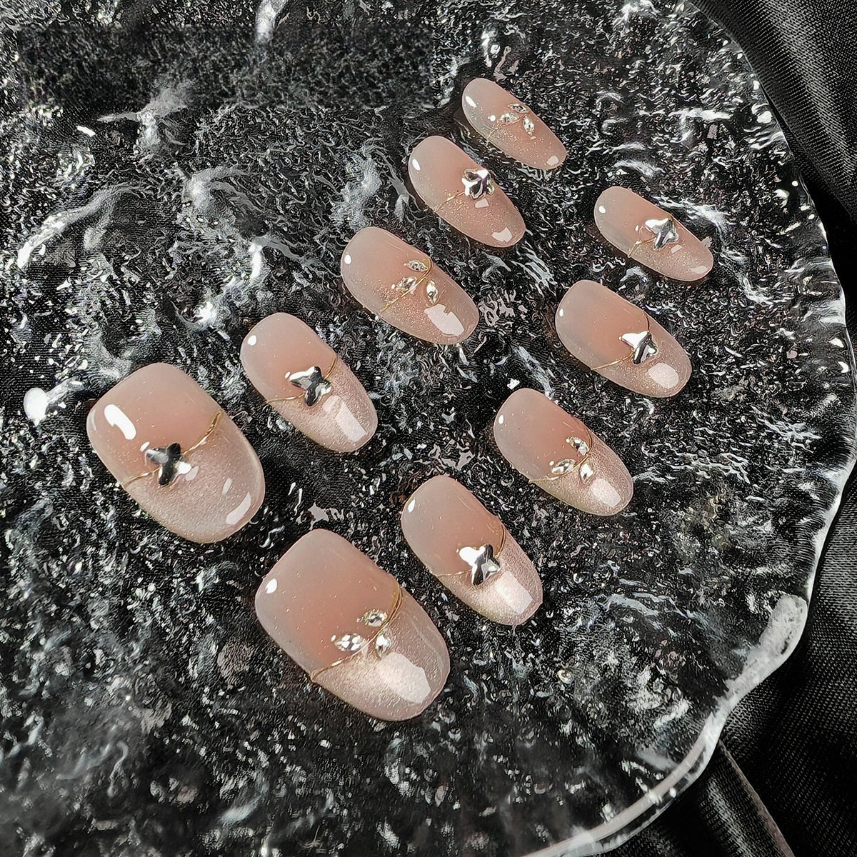 All press-on nails in the shop are handmade by manicurists. Due to lighting issues during photography and variations in mobile phone resolutions, slight color differences are inevitable but do not affect the overall effect. Additionally, each stroke by a manicurist is unique, so each set of press-on nails may be distinctive.