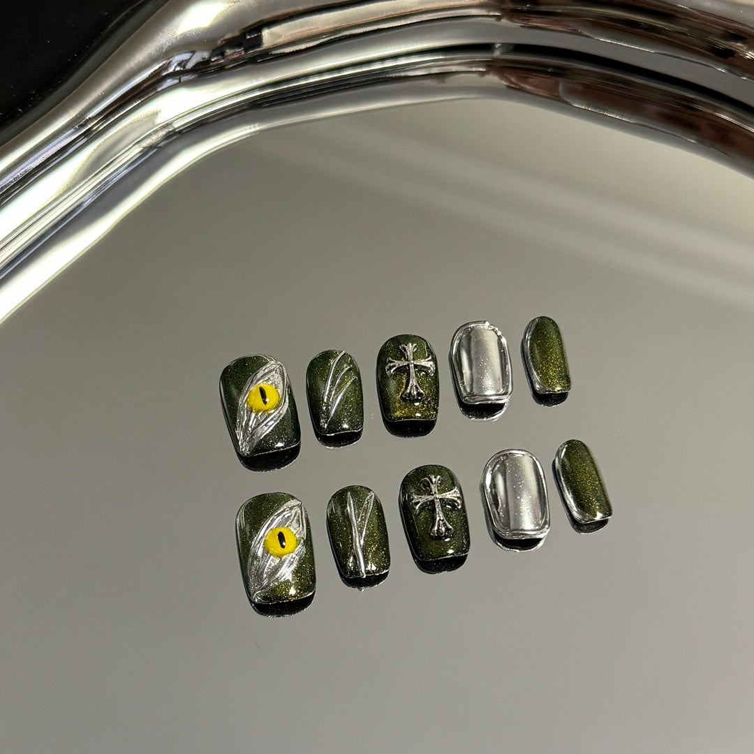 All press-on nails in the shop are handmade by manicurists. Due to lighting issues during photography and variations in mobile phone resolutions, slight color differences are inevitable but do not affect the overall effect. Additionally, each stroke by a manicurist is unique, so each set of press-on nails may be distinctive.