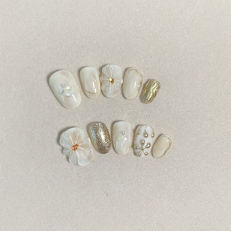 All press-on nails in the shop are handmade by manicurists. Due to lighting issues during photography and variations in mobile phone resolutions, slight color differences are inevitable but do not affect the overall effect. Additionally, each stroke by a manicurist is unique, so each set of press-on nails may be distinctive.